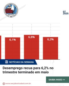 A taxa de desemprego no Brasil recuou para 6,2% no trimestre encerrado em maio de 2025, segundo dados divulgados pela …